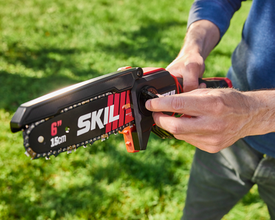 מיני מסור שרשרת חשמלי נטען Brushless + מזמרה נטענת XP 20V Brushless + סוללה 4.0Ah + מטען מהיר + תיק נשיאה גדול SKIL